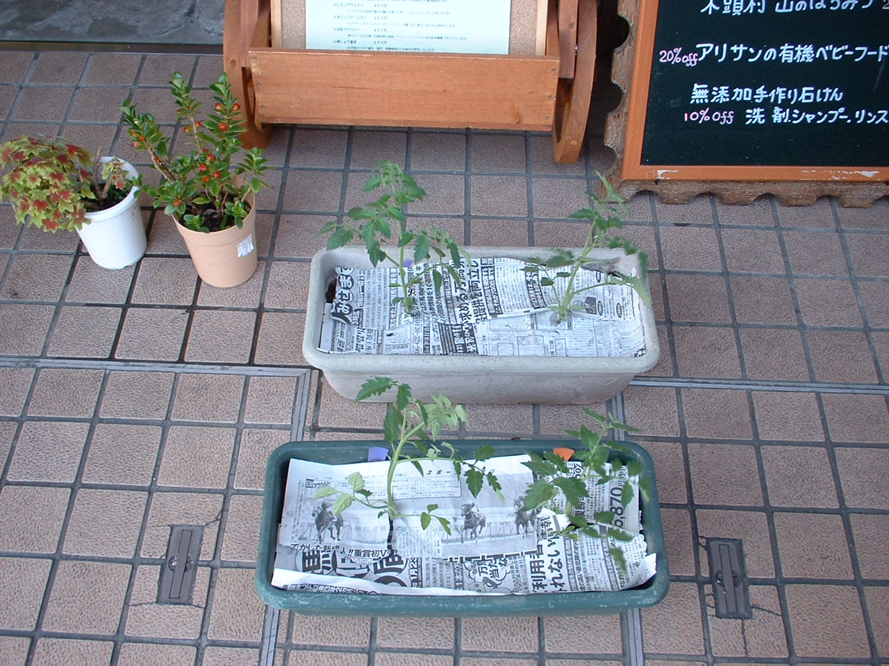 新聞紙は細かくちぎって水に完全にぬらし土に混ぜておくと良いですよ。新聞の大きさは細かいほうが良いですよ。
