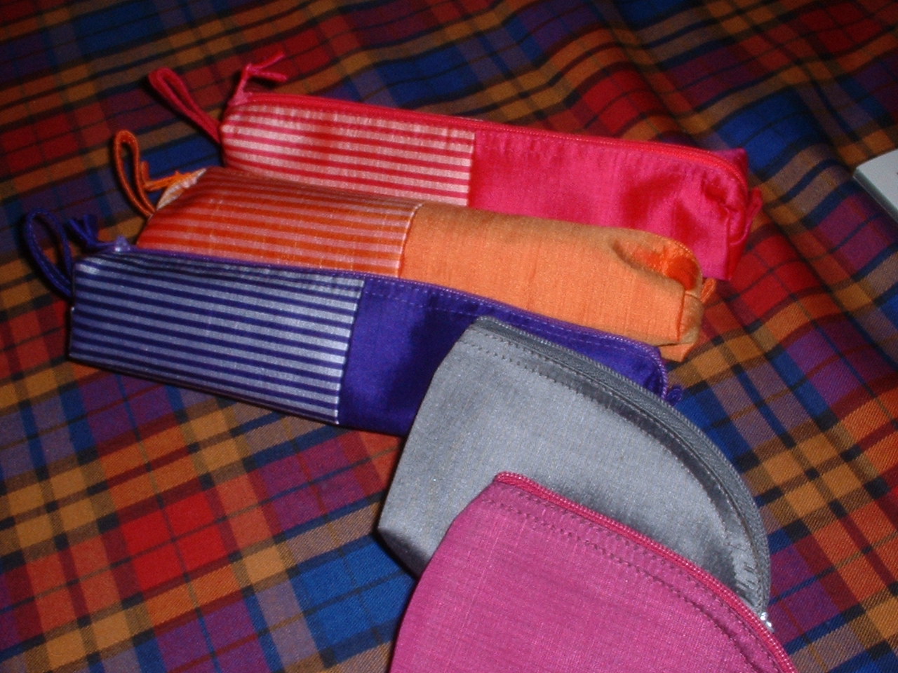 こちらは新商品のシルクのペンケースとキイケース。 鮮やかなストライプが綺麗でしょ。